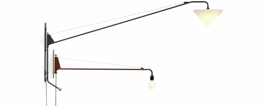 Una lámpara en voladizo, funcional y austera. La Potence no tiene ornamentos: solo un brazo metálico giratorio anclado a la pared. Pensada inicialmente para un uso doméstico, su carácter brutalista y su movimiento controlado la hacen perfecta para interiores con alma arquitectónica.